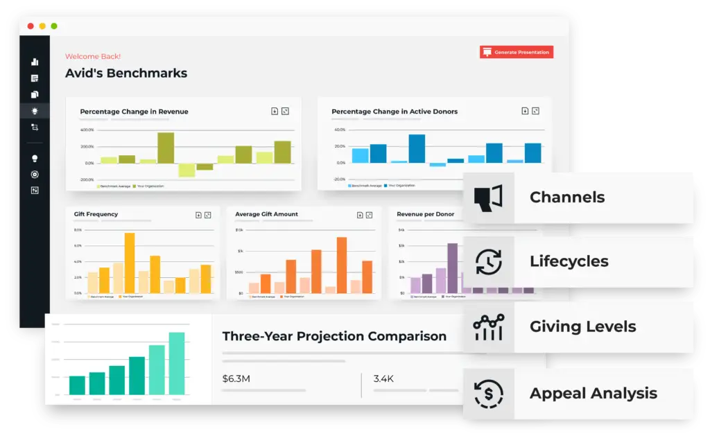 Some benchmarks, including Avid Benchmarks, will show you how often a donor gives to a nonprofit on average.
